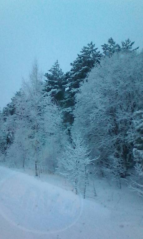 Морячка, мы готовы выслать, хоть десять посылок! Сегодня еле откопались, чтобы выехать. Трактор в четыре утра все расчистил, а сейчас уже и следов расчистки нет! Снег липкий, деревья, провода - все побелело! Красиво!