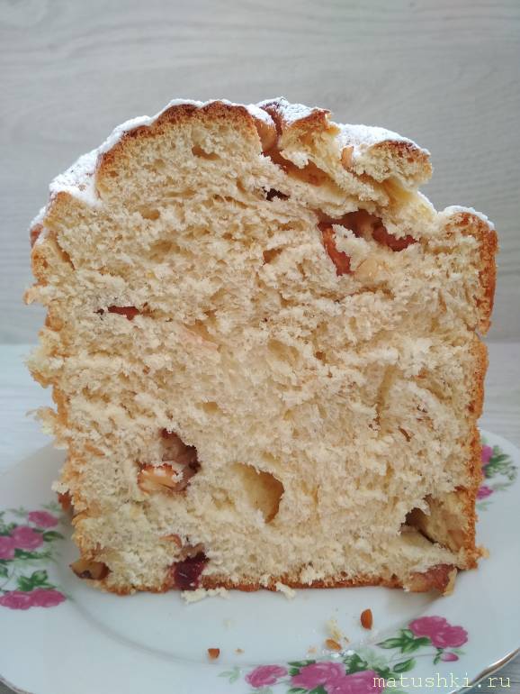 В этом году пекла как всегда по своему рецепту обычному. 2 порции делала. Одну с изюмом, вторую - с орехами, т.к. наша маленькая внучка не ест выпечку с изюмом. С орехами всем понравились, кроме меня