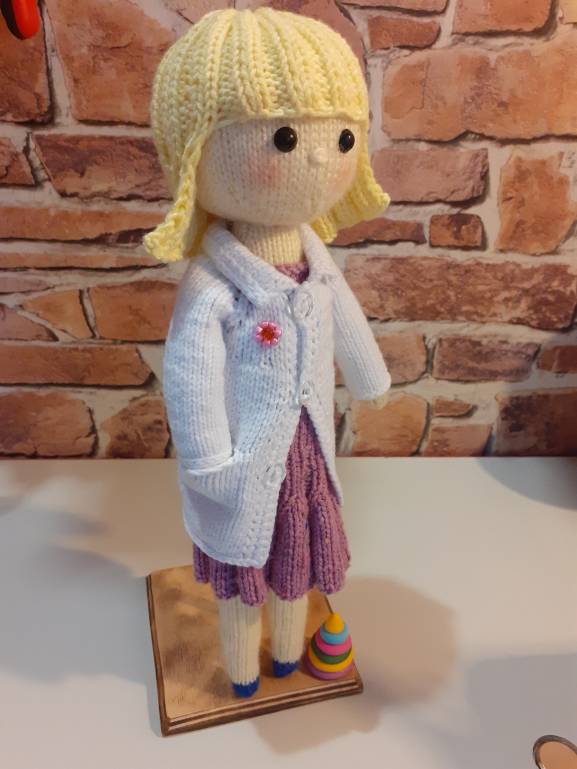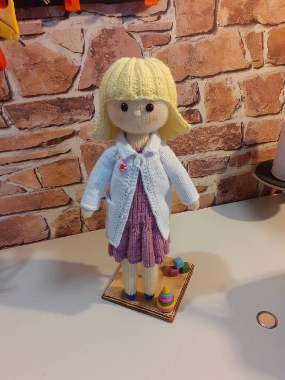 Она в туфельках, и это подарок заведующей нашей. Не знаю надо ли что то ей в руки давать.. Дарья говорит ничего не надо, кукла похожа, и то что игрушки, сразу она сказала, что это воспитатель