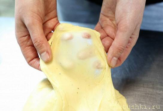 Отправлено спустя 3 минуты 19 секунд: Ёжик в тумане, в хорошо вымешанном тесте развивается глютен, оно растягивается, но не рвётся. Любое тесто требует тщательного смешивания. За счет этого образуются волокна. Я месила минут 20.