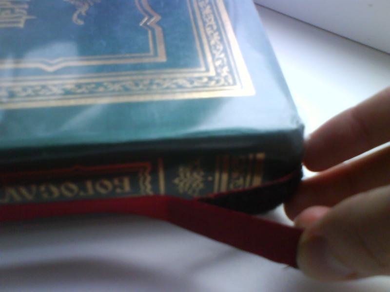 Вот фото, как крепиться закладочка к книге, при помощи крепежной ленты. Да, для застежки использовала лепучку клейкую (продается в швейных магазинах, одна половинка мягкая, другая более грубая, а их обратные стороны липкии, как скотч. Наверное видели такую в продаже).