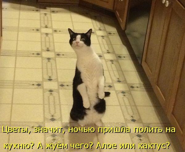 Выражение морды лица расшифровывается так: "Не придешь домой - попрощайся с цветами"