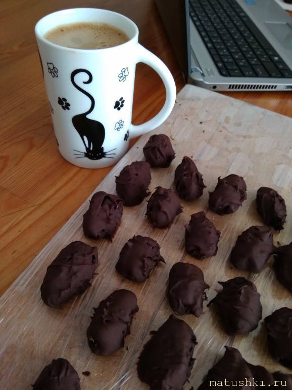 Под кофе и чай прекрасно идут конфетки "финики с арахисом в темном шоколаде"