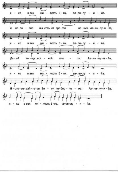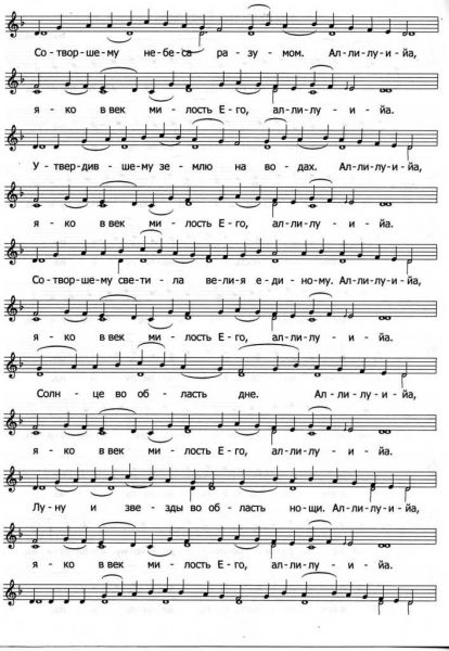 Раскопано в моих хомячьих запасах. Если честно - не знаю, были ли у нас уже здесь эти нотки. Полиелей византийского распева (двухголосие - мелодия с иссоном). В сети встречаются аудиозаписи.