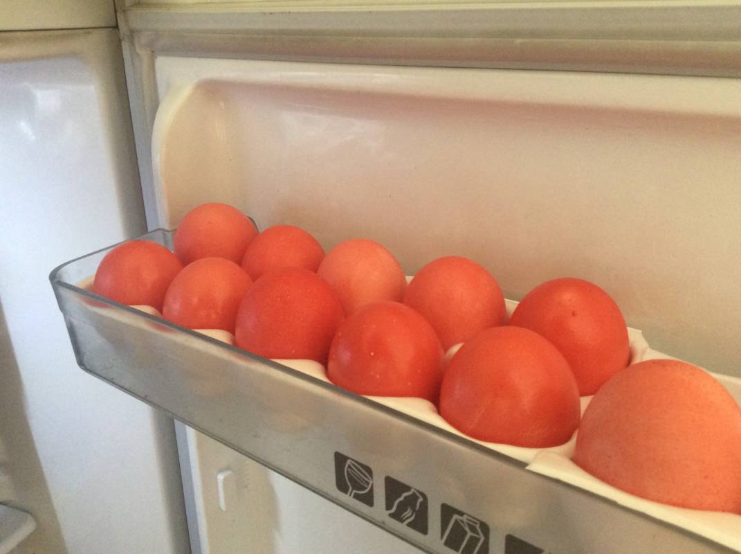Они будут коричневые, а не красные, а если шелуху переложить, то и можно получить очень темные яйца.