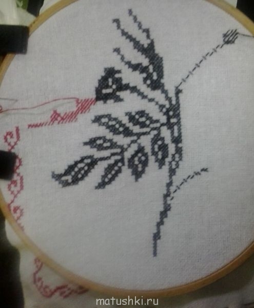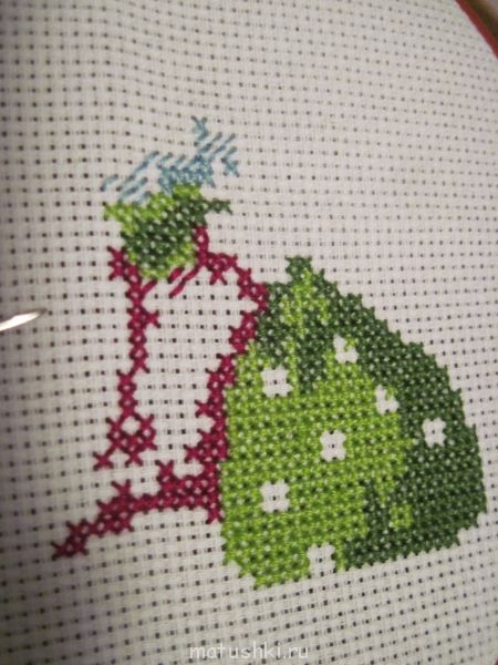 У меня дела обстоят так: продолжив вышивать монохром на двунитке, я обнаружила, что нитки на ткани переплетены не совсем равномерно. Хотя на глаз этого не определишь, но вместо строго круглой кроны дерева, у меня начал вырисовываться явный овальчик. В общем, бросила я эту вышивку, даже крестики считать не стала.