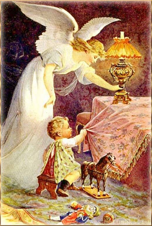 Девочки, вам известна такая картинка - ребенок тянет скатерть со стола, и на него чуть не падает горячий чайник. А Ангел-хранитель удерживает ручку ребенка. Ну, что-то в таком плане, примерно.
