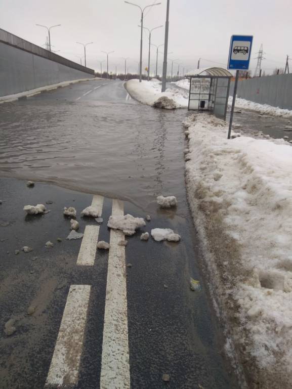 Вчера был ливень, сегодня все течет и тает, на улицах реки талой воды.