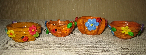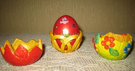 Подставки под яйца из соленого теста. Покрашены акриловыми красками и покрыты акриловым лаком.