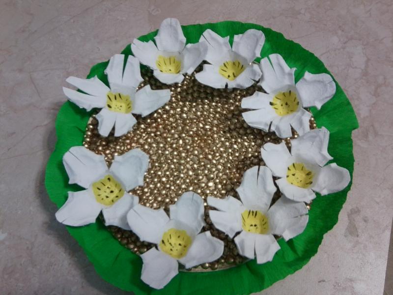 Сегодня сделала вот такую корзиночку для кулича и яичек.