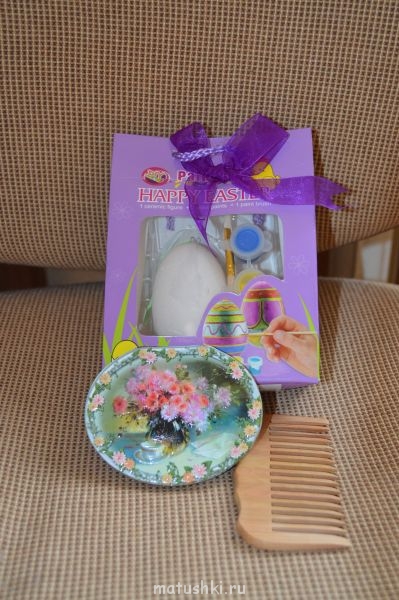 С одной стороны вот такой: А с другой стороны вот какой: 2. Я указала, что хотела бы получить раскраску для взрослых (у нас на форуме где-то была тема про такие раскраски, и мне очень захотелось пораскрашивать в такой раскраске) - и я получила набор для раскрашивания яйца красками!