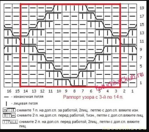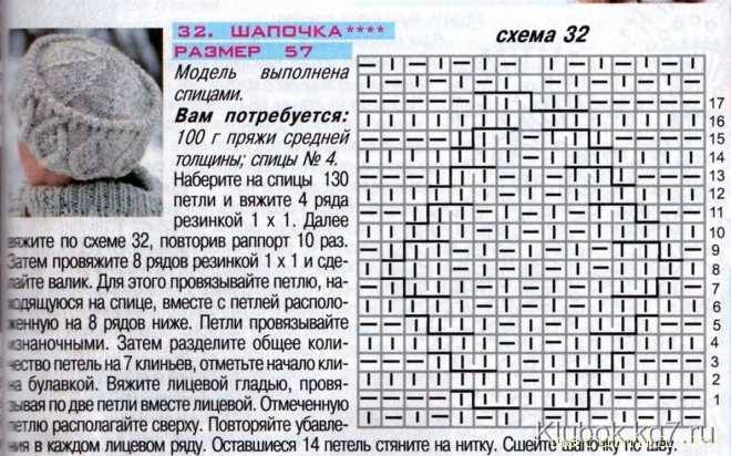 это само описание: А адекватная схема: В ютубе есть мастер-классы по этой шапке, даже на круговых спицах. Кстати, я пожалела, что не додумалась вязать на круговых.