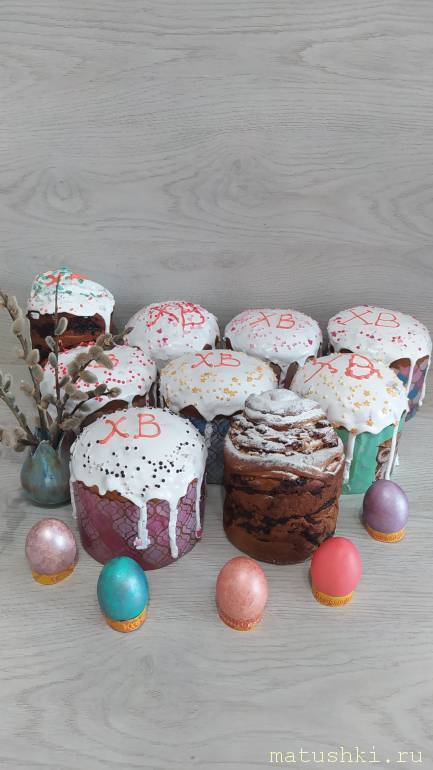 В этом году пекла 3 замеса: заварные, мясоедовские и краффины. Так как я теперь работаю ищу свой удобный рецепт, тесто на заварные куличи завела утром в пятницу и убрала в холодильник, там оно хорошо подошло и я испекла куличи вечером, удобно и не напряжно.