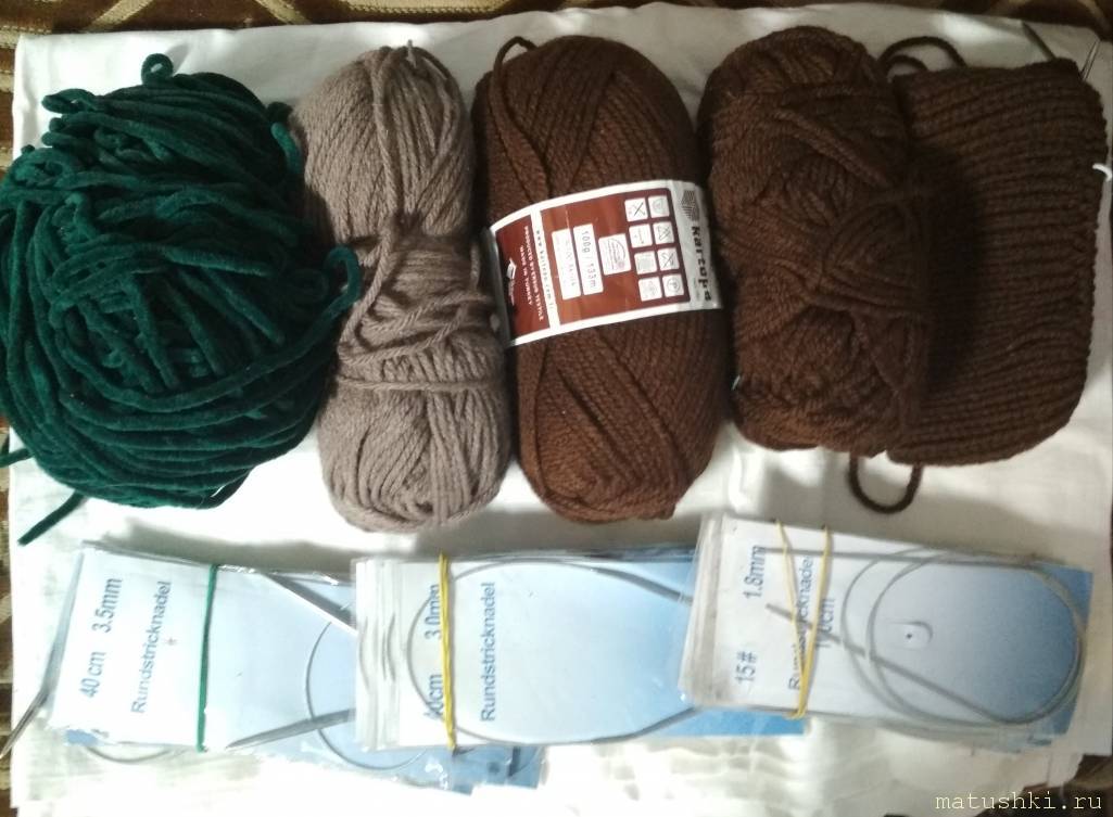 Где-то с месяц назад, наведались мы с родителями в ТД где были наши отделы - забрать уцелевшие витрины. Лазили по подвалам, т.к. на удивление именно там нашли часть витрин и обнаружили в одном из них пряжу, нитки, иголки, спицы. Все новенькое, правда только один поток был в пакете (с этикеткой), остальные 3-и без. Из одного я сейчас вязу маме зимнюю шапку с отворотом. Нить толстенькая, мягонькая. Если не хватит, спользую второй моток, правда он тоньше. Шапка будет моднючая
