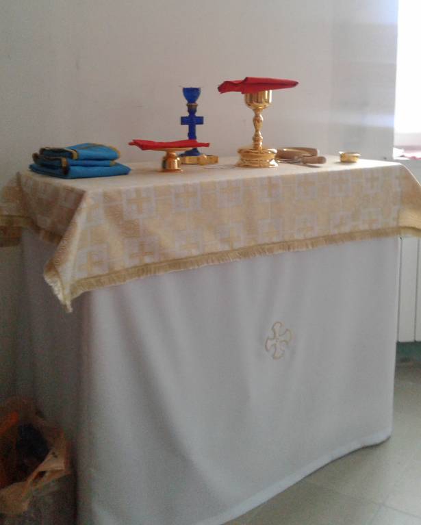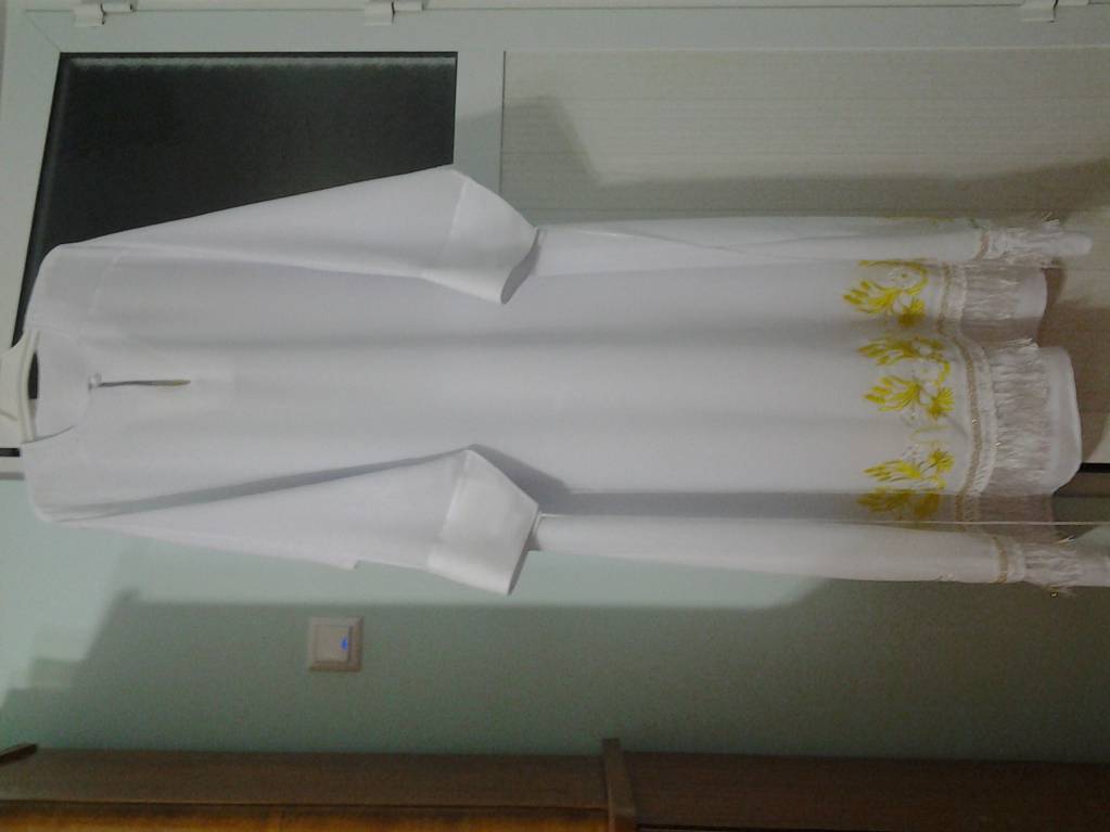 Я всё ни как не раскрою стихарь.Крутим вертим ткань с батюшкой
