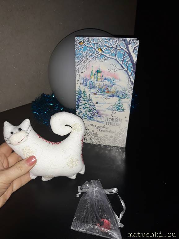 Дюймовочка, Варя, прости пожалуйста, не было возможности сфоткать открытку и сюрпризы раньше. Спасибо тебе за тёплые слова и подарочки. Мне очень приятно было получить их. Фото прилагаю: