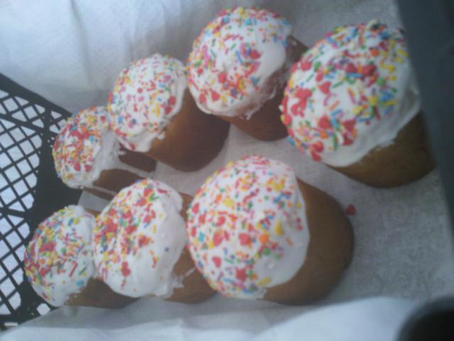 Когда опара подойдет все составы вылить в опару 1 стак. Сметаны добавить в тесто положить половину муки и вымесить (до отставания от рук. Мин 40). Когда тесто подойдет добавить 13 желтков растертых с 3 стаканами сахара, растопленный маргарин., 2 ст. л. масла и муку Тесто должно быть очень мягкое. Все хорошо выбить, чтобы тесто отставало от рук. Добавить изюм, лимон.