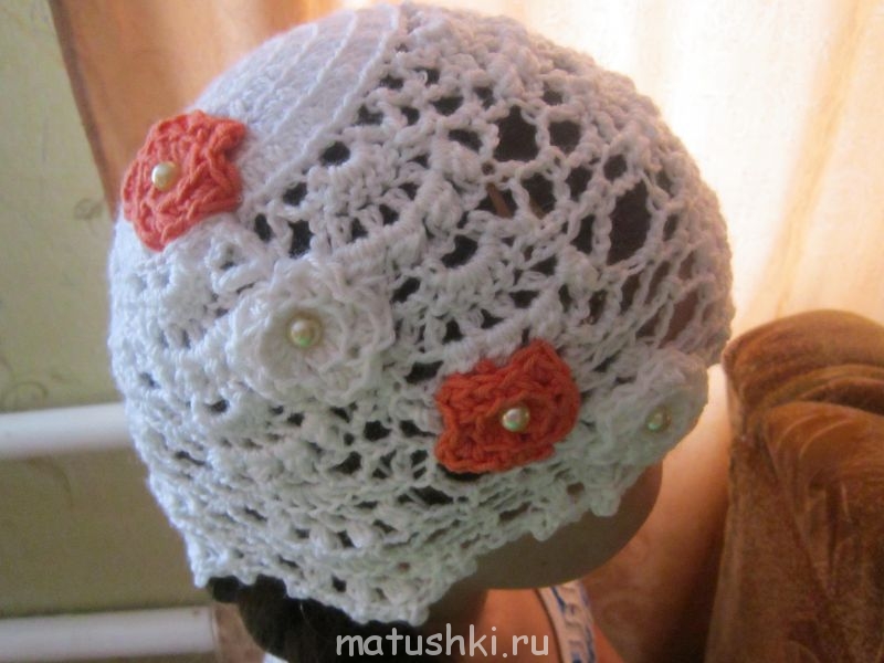 Шапочка для ранней осени. Сделала вывод,что ажуры лучше вязать хлопком,акрил тянется и теряется узор.