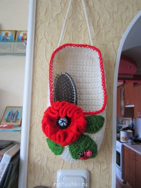 Связала вот такую безделушку, теперь не ищем расчески по всему дому. Планирую теперь девчатам в комнату связать, чтобы они не теряли свои расчески.