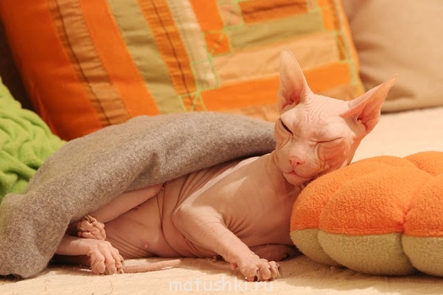 Те же кошки породы сфинкс беспомощны вне человека. Мне кажется, что этим котофеям очень грустно и холодно быть в такой шкурке.