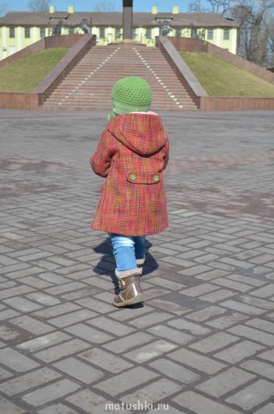 Косичка, умничка! Я вот тоже хочу Насте уже пальто-плащи шить, приучать в них ходить. Мне вот себе нужно срочно пальто дошить (петли и пояс остались), а то скоро пожарчеет, так и не поношу