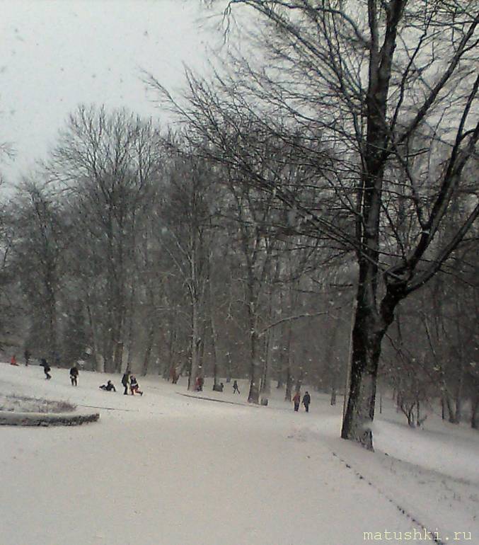 Детям радость - выскочили на горки. Под снегом наледь, не поспешишь - навернуться можно.