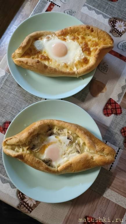 Хачапури, в мой покрошила рыбку, грибы, зелень и лук шалот, тесто правда не постное.
