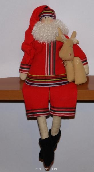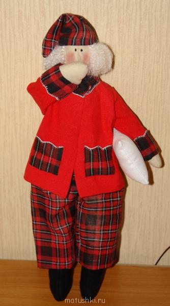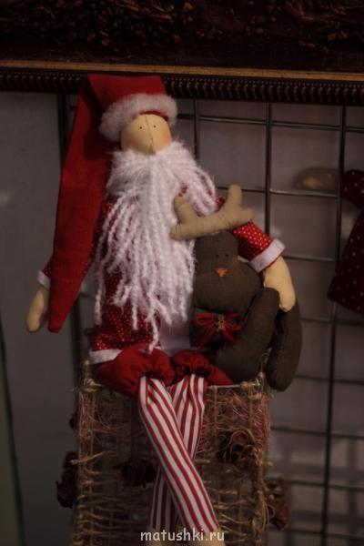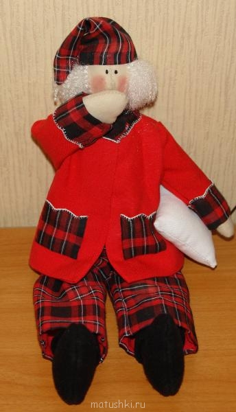 А еще есть что-нибудь из сшитого?.... Насчет Санты у меня осталась к себе пара претензий - в следующий раз буду шить одежду из более плотной ткани,будет лучше сидеть,в идеале бы из флиса,но он стал дороговат и расцветок подходящих не нашла,очень уж хотелось именно красный "костюмчик", и неплохо было бы колпачок сделать другого цвета - сливается с общим фоном. Ну,в следующий раз учту все,что нужно сделать по-другому.