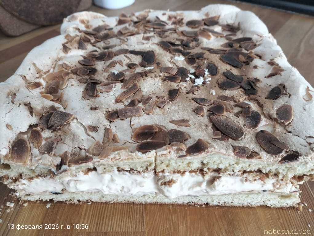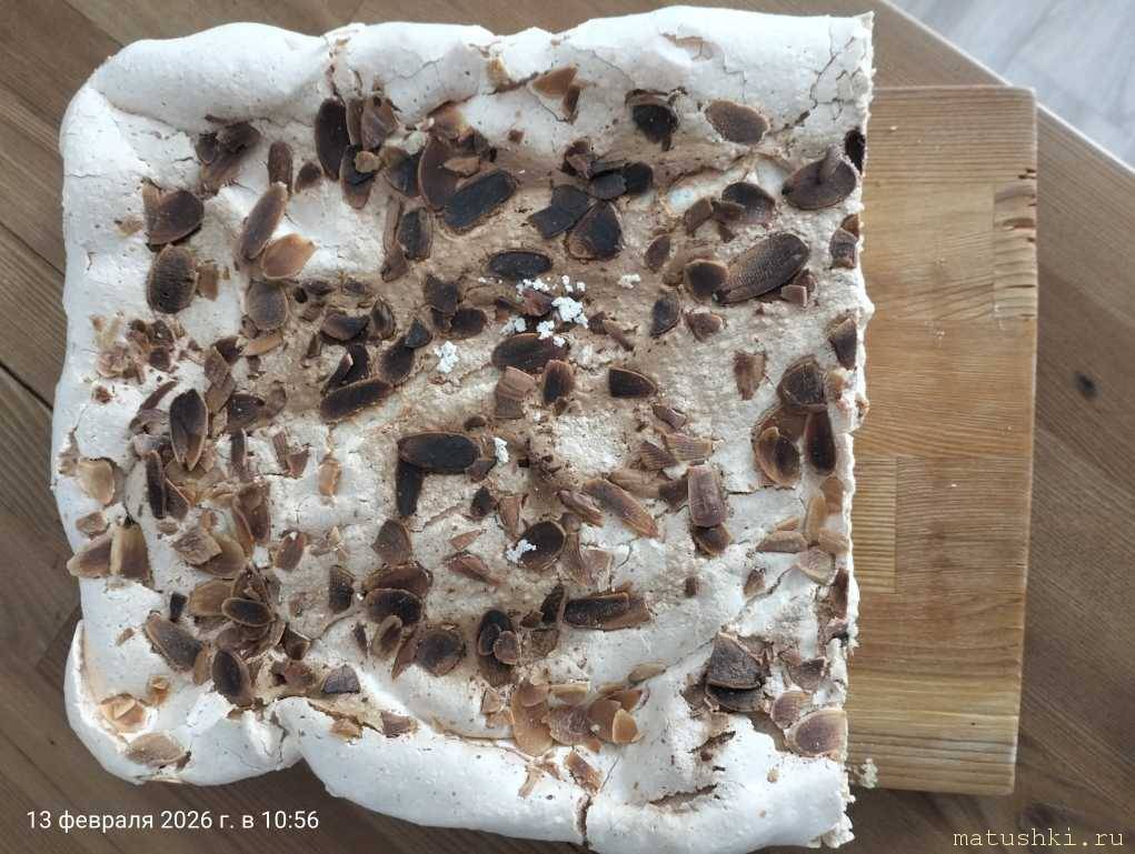Дочь тоже одобрила, хоть и не любит меренговые торты и пироги. Миндаль перетягивает на себя аромат, отвлекая от белка.