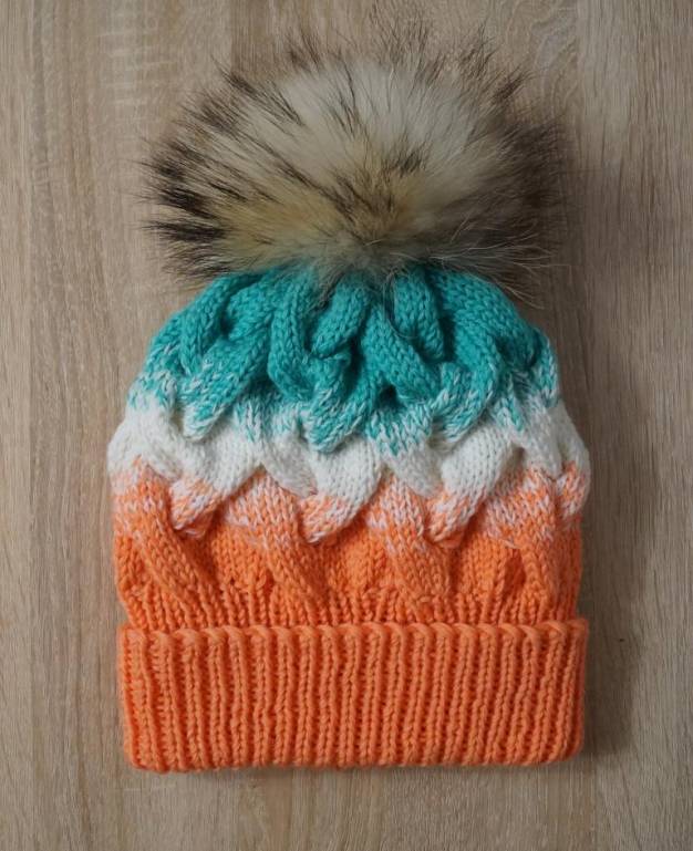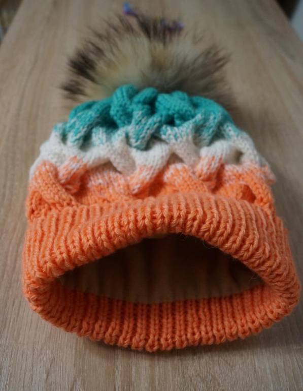 Докончена шапуля, пришит флисовый подклад и помпон. 2518 петель