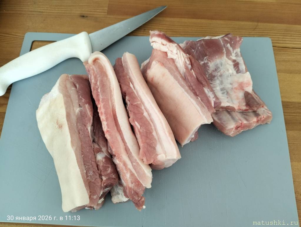 Муж срезал рёбрышки, их в фольге запеку завтра. Сало сегодня посолю.