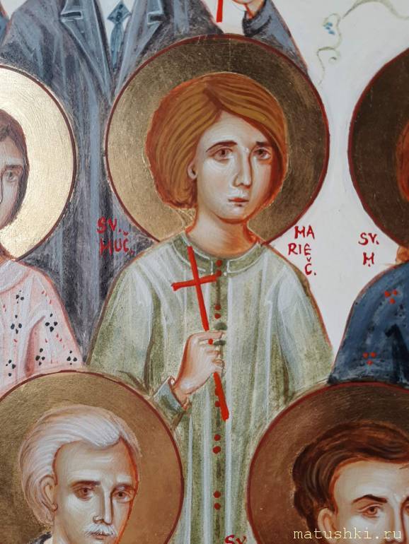 МАРИЯ, 19 лет - невеста Исаии, сына о. Митрофана. За два дня до боксерского погрома она пришла в дом о. Митрофана, желая умереть в семье своего жениха. Когда боксеры окружили дом о. Митрофана 10 июня она с большим мужеством помогала другим спасаться, поддерживая при перелазании через стену. Когда боксеры и солдаты, разбив двери вошли во двор, Мария смело обличала их за беззаконное избиение людей без всякого разбора, и они не осмелились убить ее, только ранили ей руку и прокололи ногу. Вообще она обнаружила необыкновенное мужество и разум. Сергий, сын о. Митрофана, трижды пытался убедить ее уйти и скрыться, но она отвечала: «Я родилась около церкви Пресвятой Богородицы, здесь и умру», и осталась там, где была церковь. Вскоре пришли туда солдаты и боксеры, и мужественная женщина мученически скончалась, почитая смерть отшествием в место блаженного упокоения.
