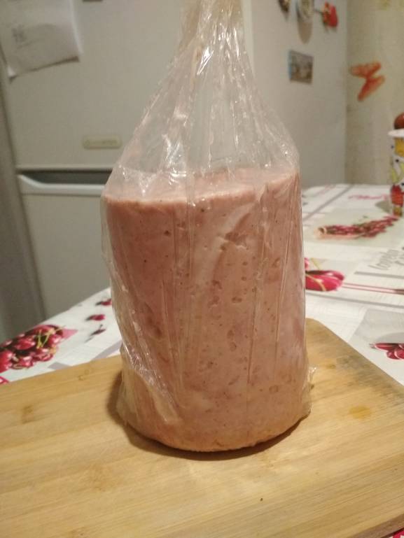 Попалась мне на глаза темка на форуме ХП про ветчинницу, магазинную колбасу мы не берём, а так хочется иногда колбаски. Вот первый опыт. Мясо ( свинина, курица), нитритная соль, специи и всё, вкусно, может надо со специями поэкспериментировать, чтобы вкус ярче был, но главное вкус и текстура колбасный, а не котлетный. Будет моё фирменное блюдо по праздникам.