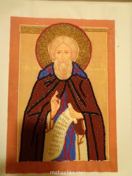 Свет@, эту икону я вышивала давно (лет 8 назад) вышивать не умела, бисер кривой китайский, а про схемы понятия не имела. Поэтому мне увеличили через компьютер маленькую ламинированную икону, распечатали. Потом я эту распечатанную икону пришила на ткань и прямо сверху по рисунку вышивалаСвет@:А второй иконе ты рисовала сама ризу?
