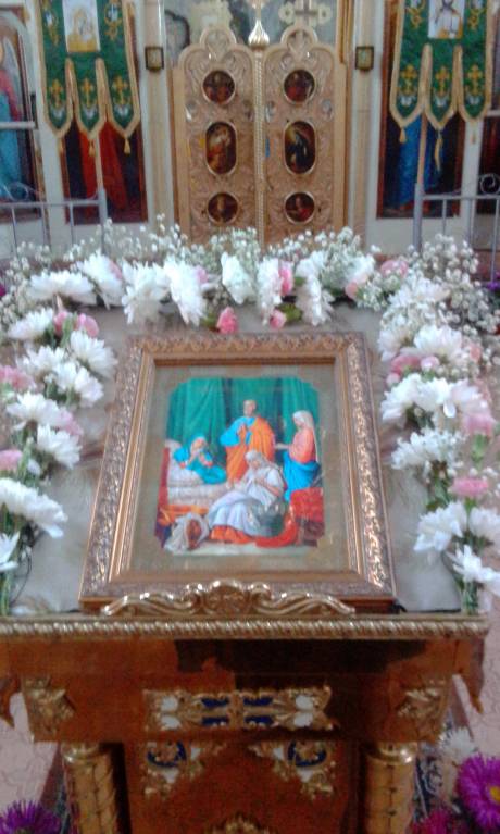 Алтарную перегородку с иконами бережно украшаем.