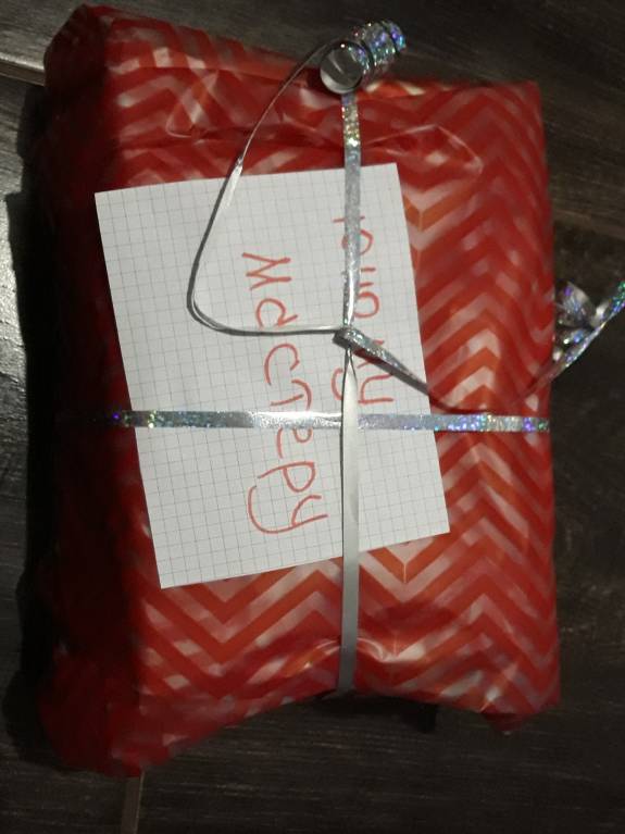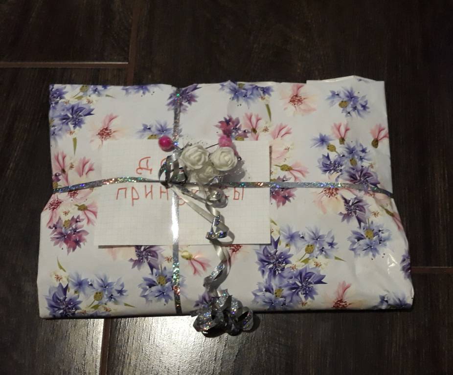 Открываем большую коробку, выложила большую коробку с конфетами (как я думала) на диван, прочитала в слух письмо от Леночки Полтавчанки
