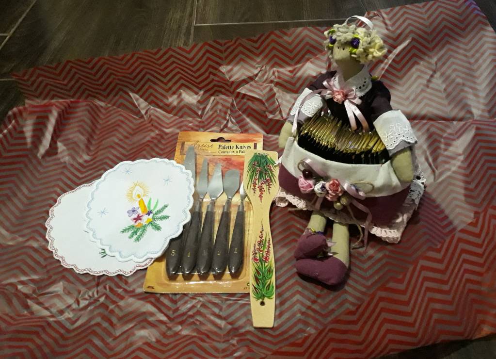 А расписная лопаточка и вышитые салфетки - работа учениц вышивального лицея, они будущие спецы по вышивке