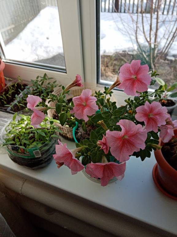 Успела пересодить две петунии в горшки, домой на подаконник, надеюсь будет цвести.