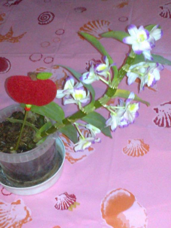 Дюймовочка, красивый! Да, порадовал к празднику. А мой дендробиум что то чахнет.