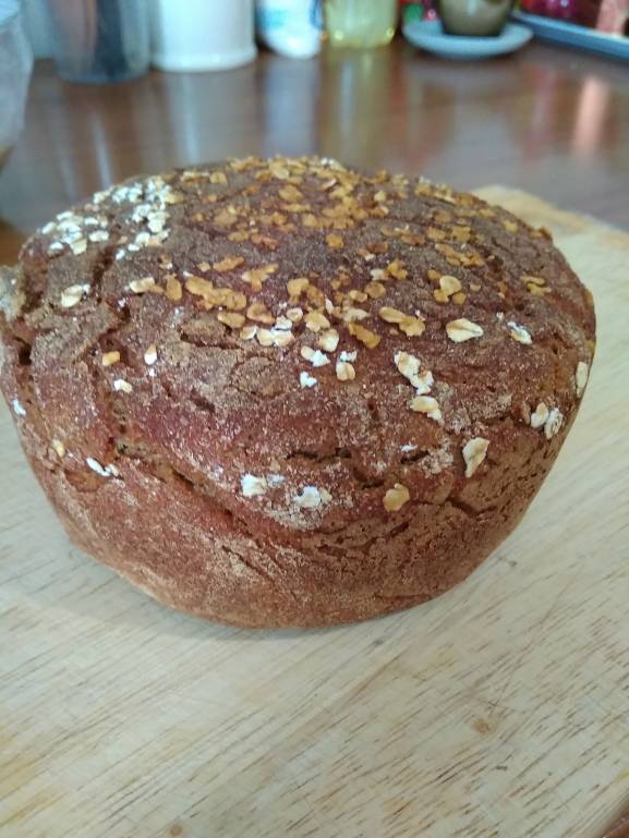 Испекла хлеб на ржаной закваске.