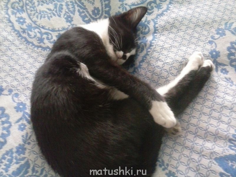 ой, он та еще балерина. спросонья ноги задние собрать не может, они у него длинные. путается в них, и падает
