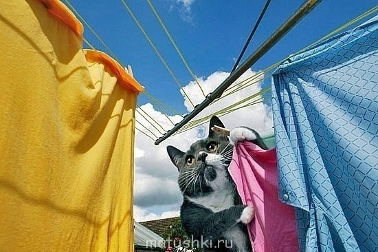9. Кот должен помогать человеку расстилать постель, внимательно наблюдая, чтобы под простыней не оказалось никаких предметов.