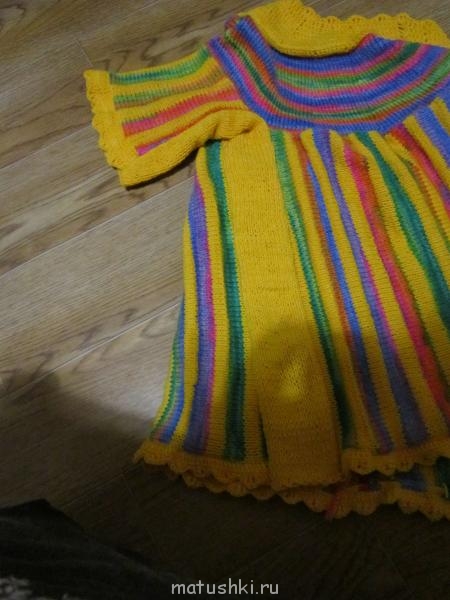 Отчитываюсь.Я наивно считала,что тунику довязала,но ,примеряв,оказалось,что она плохо сидит -тянет под мышками.Решила выйти из положения так -довязать втулку и вшить ее между полочками с рукавами.Еще повезло,что в магазине еще была такая же пряжа.Втулка на фото-желтая полоска.Связала и вшила пока одну.Может и не в тему,но распускать уже очень жаль.Буду считать,что это оригинальная деталь.