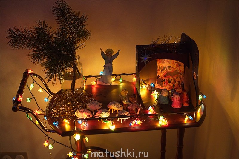 Установили наш прошлогодний вертеп. Еще украсила его электрогирляндой.
