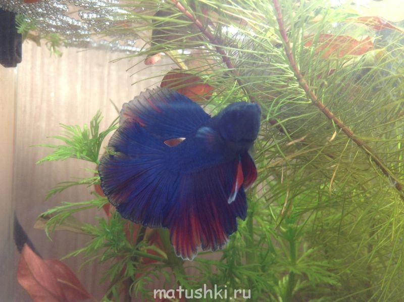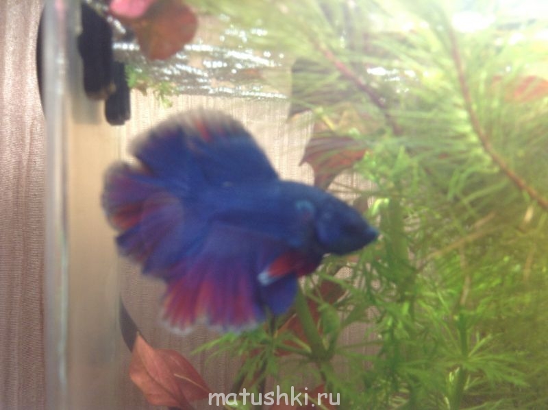 А это мой первый петушок, красный, ему уже год. Очень мирный товарищ)))недавно посадила к нему данио, так они его стали щипать! Сейчас вроде не щипают, но объедают вовсю, завтра отдам этих красавцев.