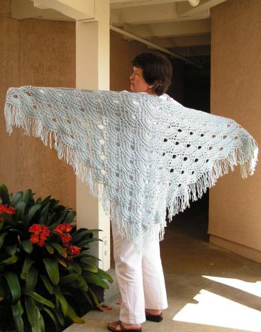А глядя на шаль, я вспомнила про свою. Вязала когда то в подарок свекрови, на ней же и сфоткано