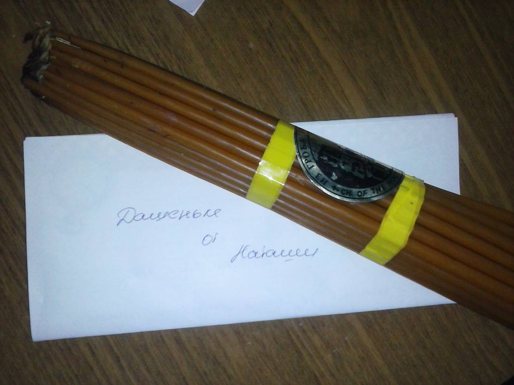 Натулечка прислала мне письмецо и пучочек свечей с Гроба Господня, которые были возожжены от Благодатного Огня! ровно 33 штучки. запах от них почуяла еще при получении конверта