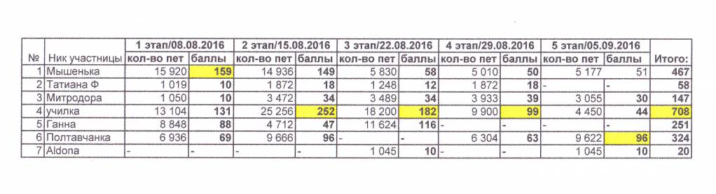 Таблица. 5 этап