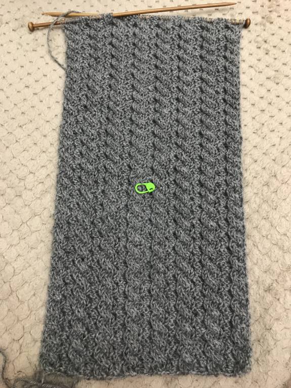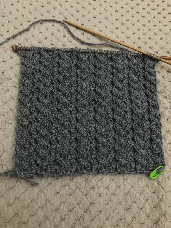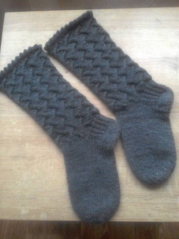 Серый начала заново, взяла чуть тоньше спицы, так мене рыхлая вязка получается, мне больше нравится