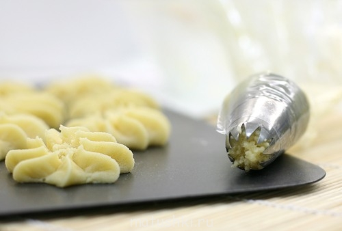 Полуразмороженное тесто разрезать на квадратики 3х3 см, сверху пройтись вилочкой, сделать дырочки.Выложить на противень, смоченный водой. Выпекать в духовке сначала на 220-230градусов, минут пять, затем снизить температуру до 180 градусов и довести до готовности, это еще 15-20 минут.